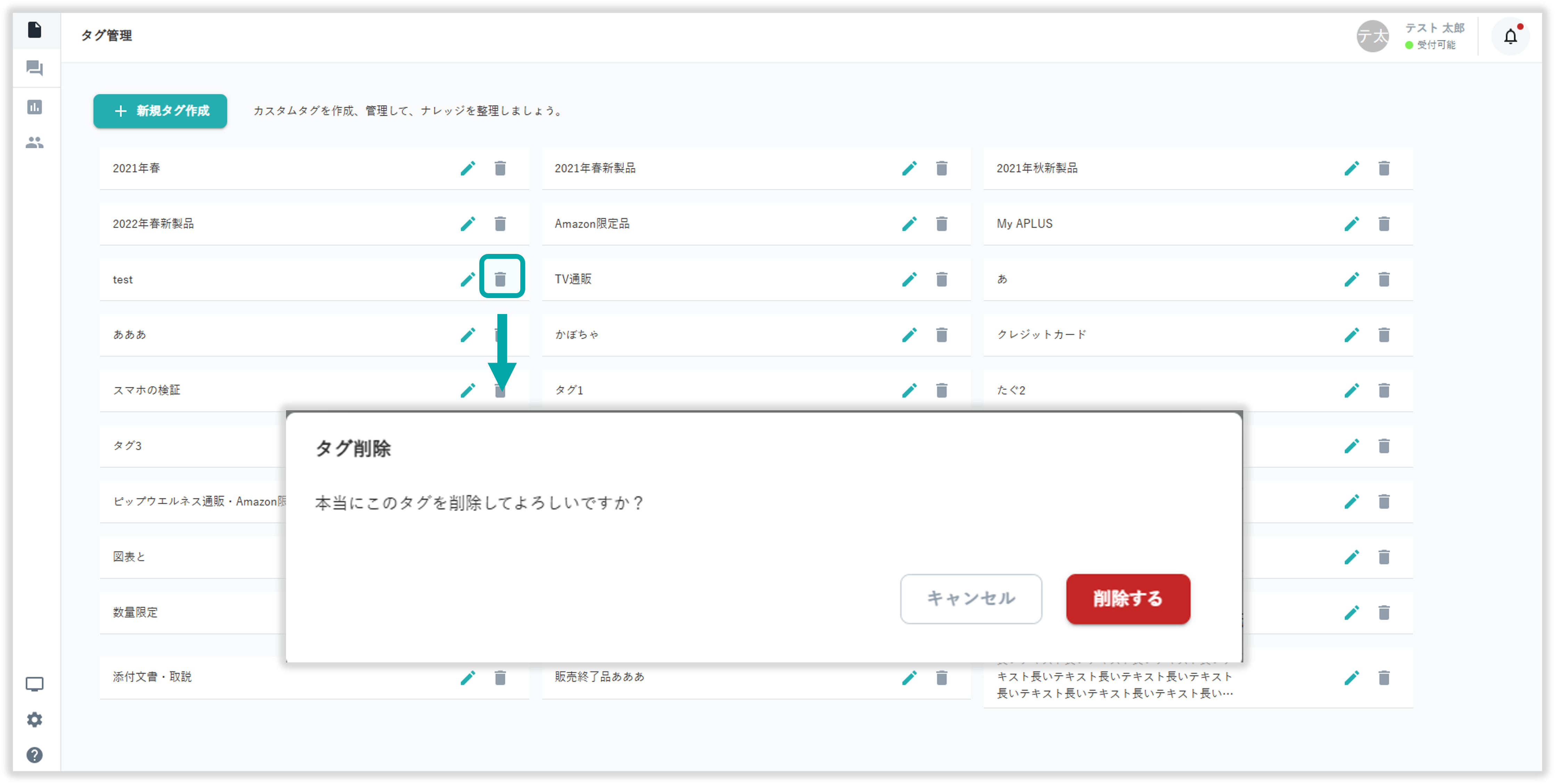 アイコンを選択してナレッジタグの削除が行えます。