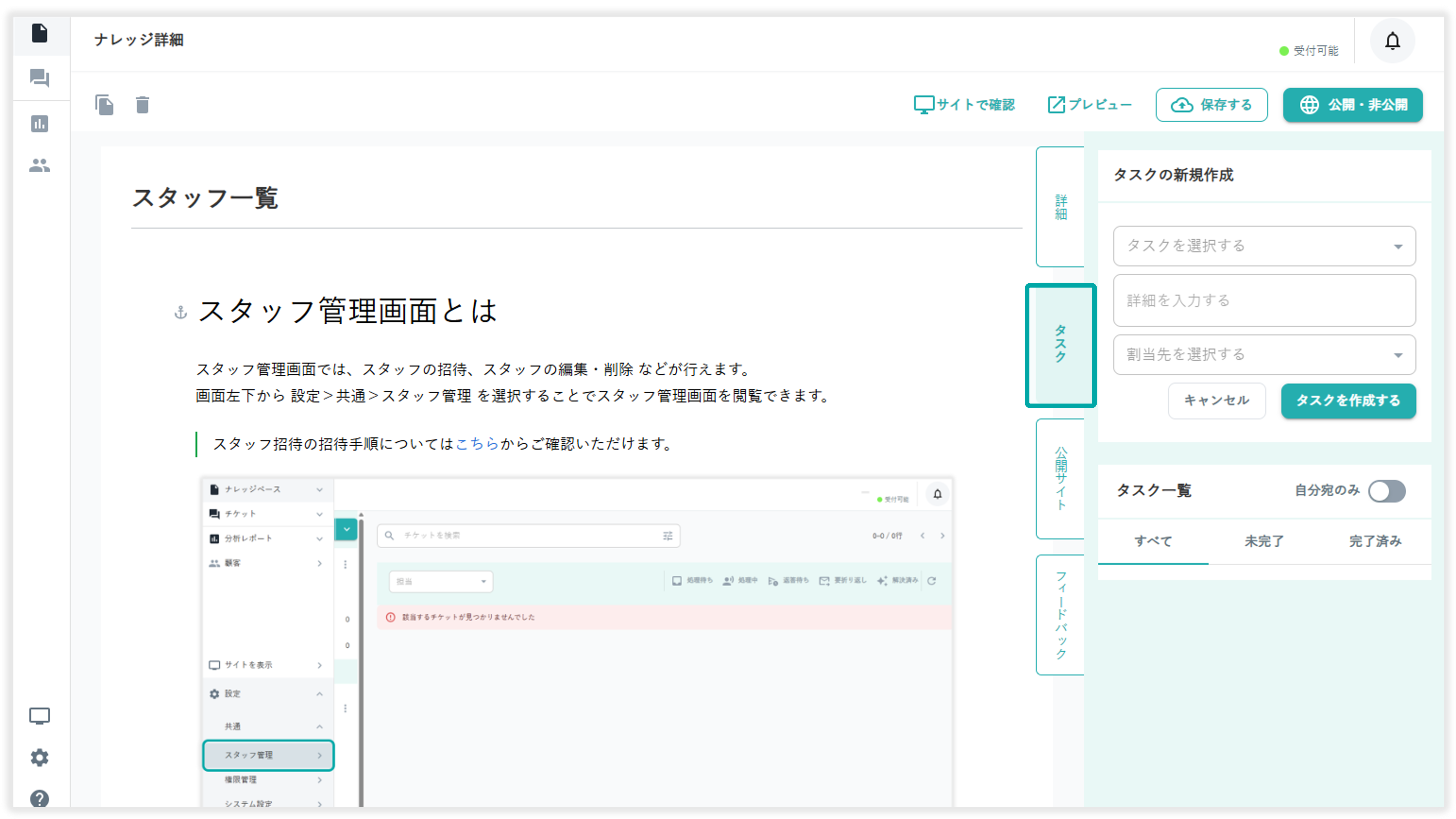 「ナレッジに移動」を選択することで、タスクが割り当てられたナレッジに遷移することができます。