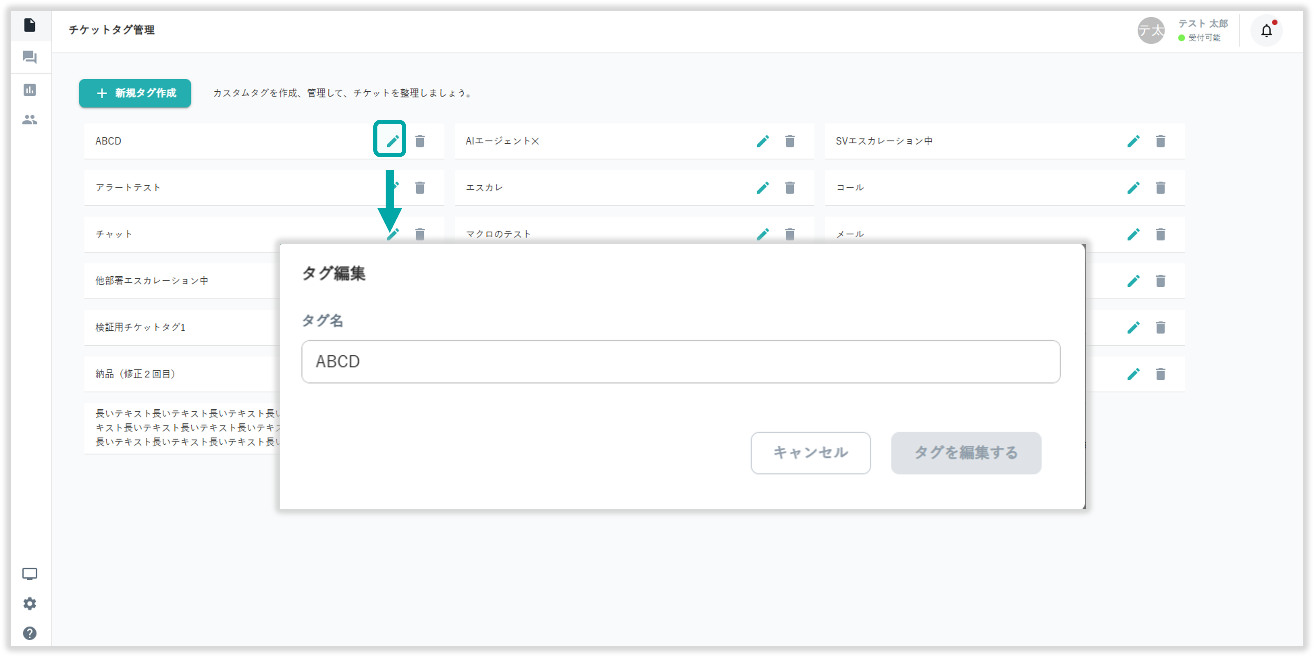 本ナレッジではチケットタグ管理画面についてご説明いたします。