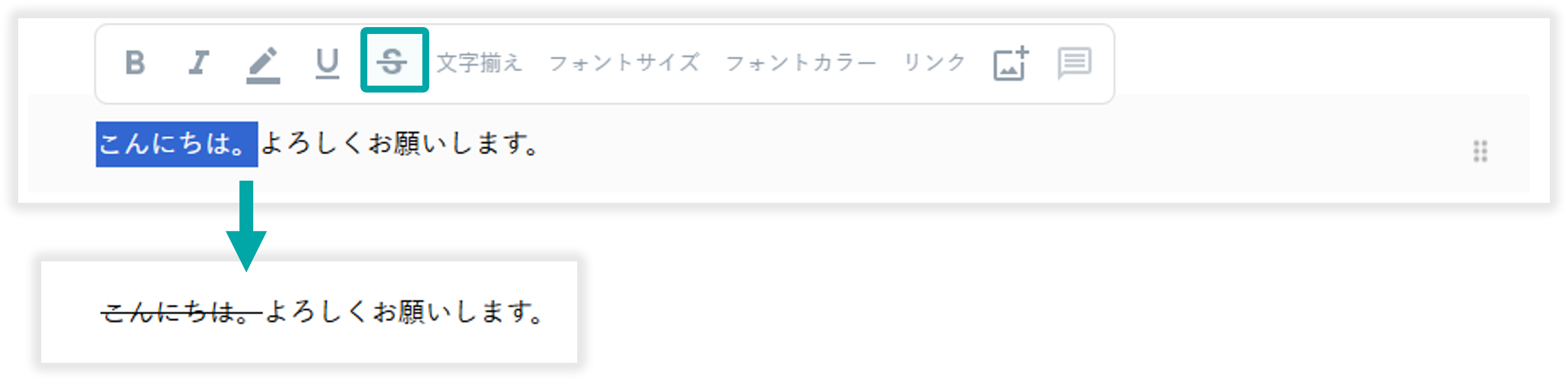 範囲選択したテキストに取り消し線を追加できます。