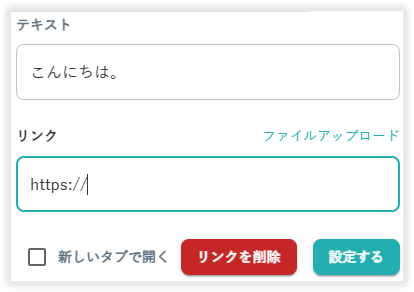 範囲選択したテキストが表示されます。入力欄からリンクを挿入するテキストの編集が行えます。