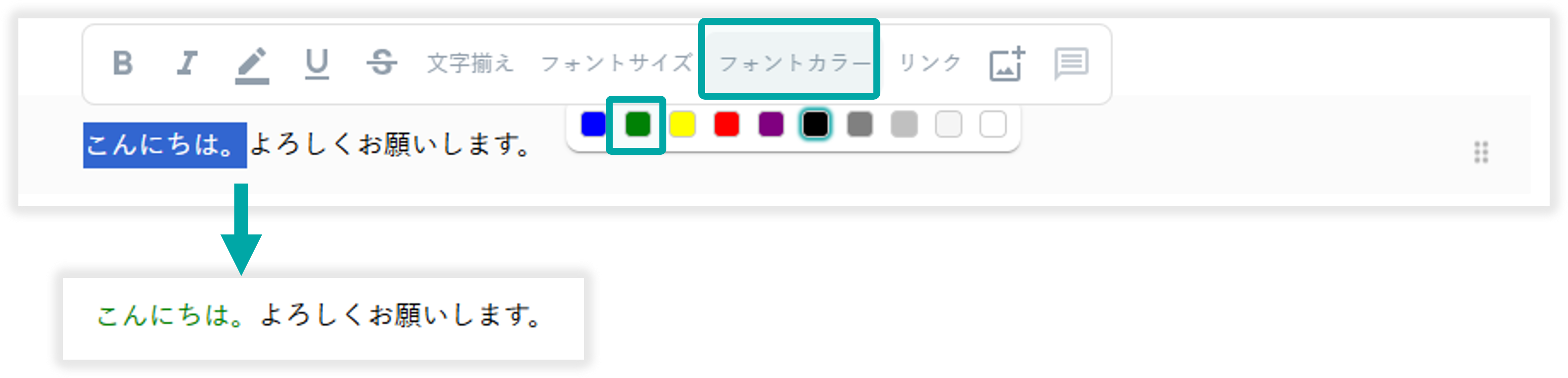 範囲選択したテキストのフォントカラーを変更できます。