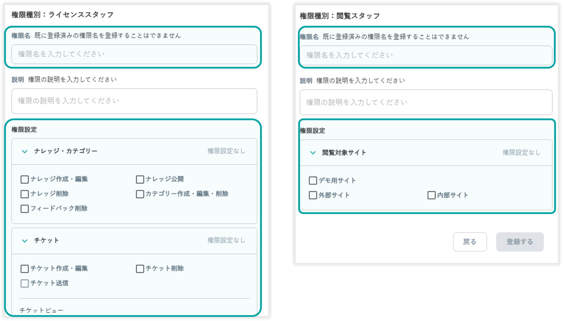 必須項目ではありませんが、権限内容の補足や用途がわかりやすい説明を入力しておくと便利です。