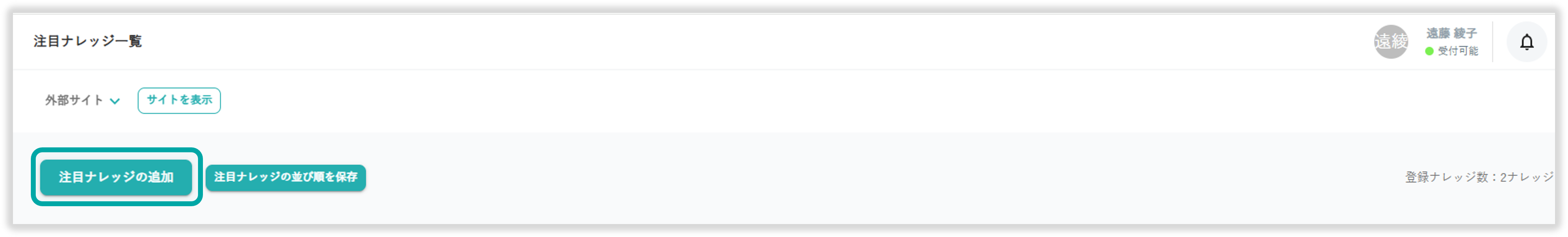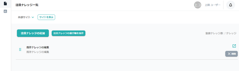 追加した注目ナレッジは一覧から確認できます。