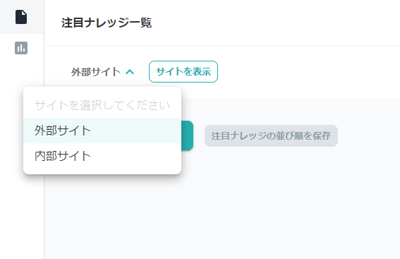 運用しているFAQサイトが複数ある場合は画面左上から、注目ナレッジを追加したいサイトを選択してください。