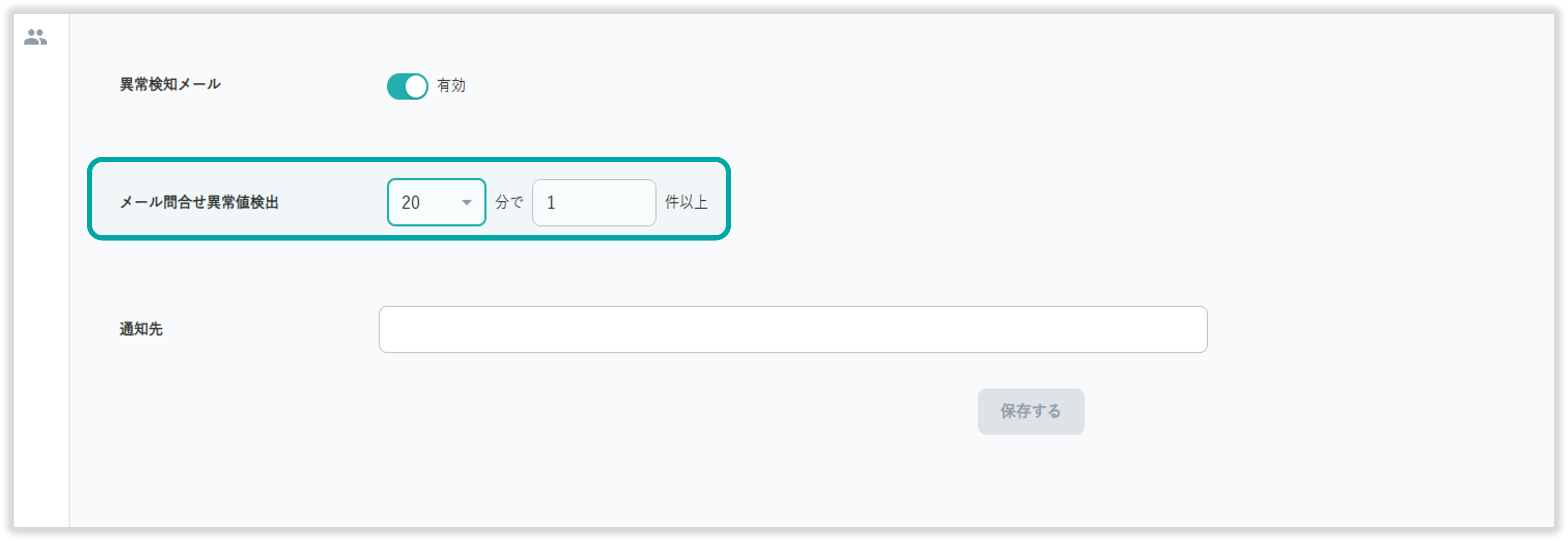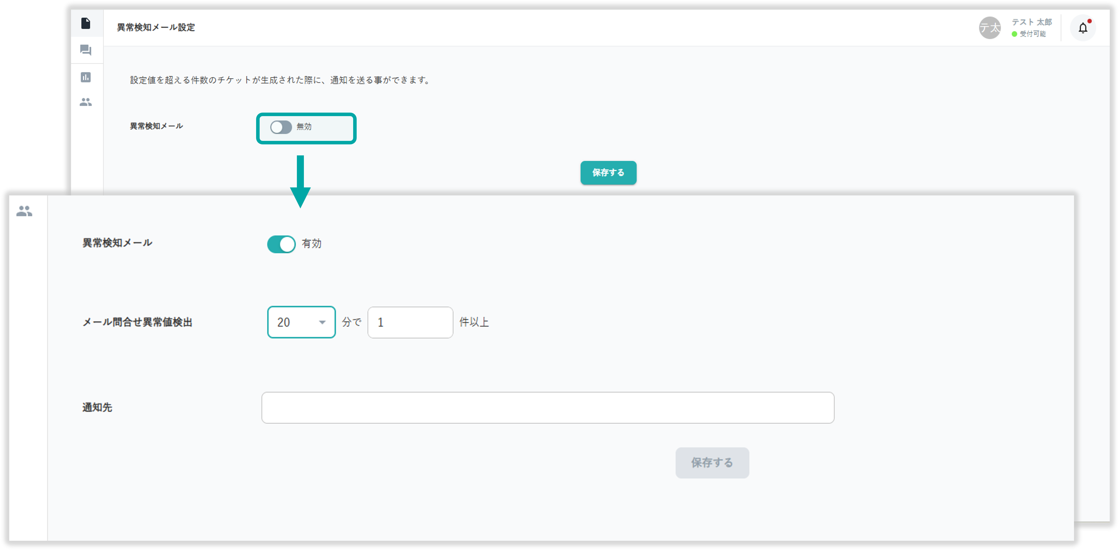 設定>チケット設定>異常検知設定 から異常検知設定画面へ遷移できます。